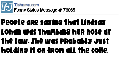 X People are saying that Lindsay Lohan was thumbing her nose at the law. She was prabably just holding it on from all the coke.