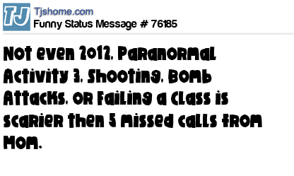 - # 91464 2012, Paranormal Activity, Bombs, Guns, Terrorist are not as scary as 3 missed calls from your mom.
