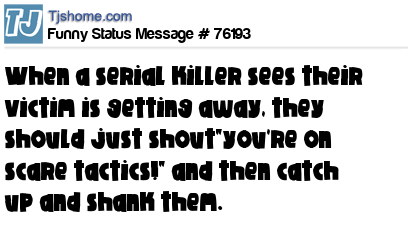 X When a serial killer sees their victim is getting away, they should just shout"you're on scare tactics!" and then catch up and shank them.