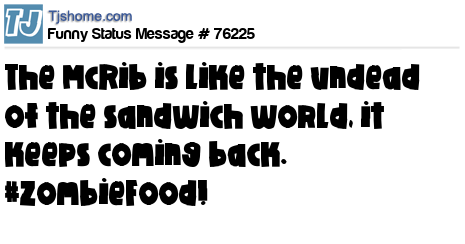 X is The McRib is like the undead of the sandwich world, it keeps coming back. #ZombieFood!
