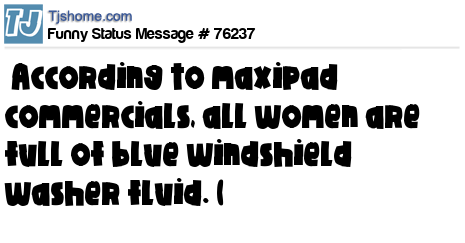 - # 18708 says according to maxipad commercials, all women are full of winshield washer fluid