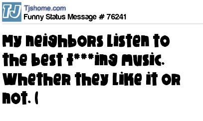 - # 75987 My neighbors listen to some excellent music. Whether they like it or not.