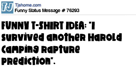 X FUNNY T-SHIRT IDEA: "I survived another Harold Camping rapture prediction".