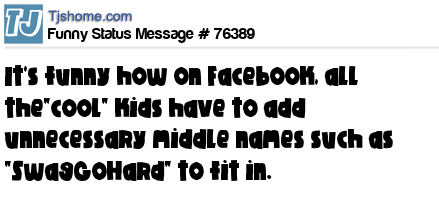 X is It's funny how on Facebook, all the"cool" kids have to add unnecessary middle names such as "SwagGoHard" to fit in.