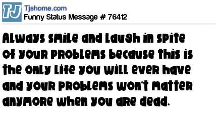 X says Always smile and laugh in spite of your problems because this is the only life you will ever have and your problems won't matter anymore when you are dead.