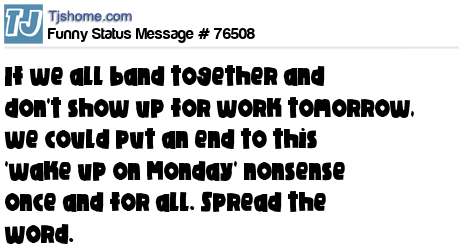 X If we all band together and don't show up for work tomorrow, we could put an end to this 'wake up on Monday' nonsense once and for all. Spread the word.