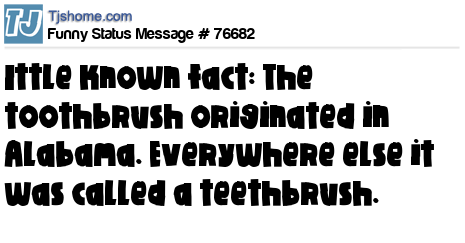 - # 102604 Did you know that the toothbrush was invented in Alabama???? If it were invented anywhere else they would have named it the teethbrush....