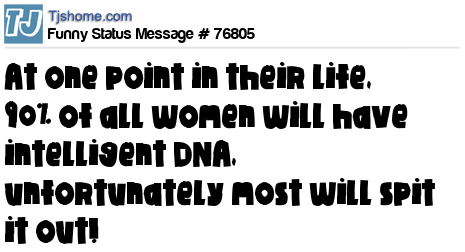 X At one point in their life, 90% of all women will have intelligent DNA, unfortunately most will spit it out!