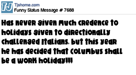 X has never given much credence to holidays given to directionally challenged Italians, but this year he has decided that Columbus shall be a work holiday!!!