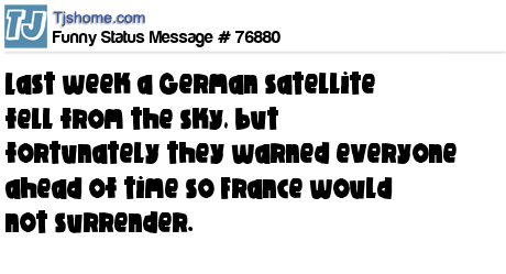 X Last week a German satellite fell from the sky, but fortunately they warned everyone ahead of time so France would not surrender.