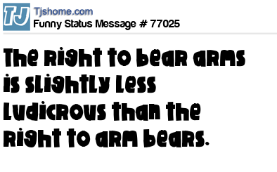 - # 126214 Let's get it straight. It's not about the, "Right to bear arms", it's about the, "Right to arm bears."