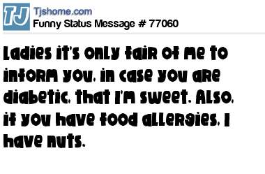 - # 198571 My female doctor told me I'm really sweet. Well, she actually said I am severely diabetic but I knew what she meant.
