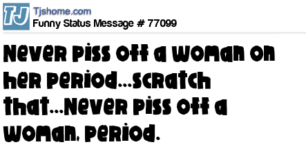 X Never piss off a woman on her period...scratch that...Never piss off a woman, period.