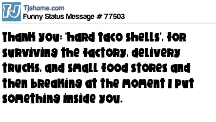 - # 63819 Thank you: hard shell tacos, for surviving the factory, delivery trucks, and small food stores and then breaking the the moment I put something inside you.