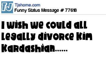 - # 77597 Kim Kardashian just filed for divorce. She must not be aware that I'm in a serious relationship. I'll have to let her down easy