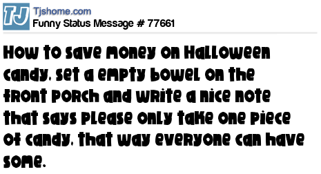 - # 180893 How to save money this Halloween. Place an empty bowl out with a sign in it. "I don't share my candy. Go away!"