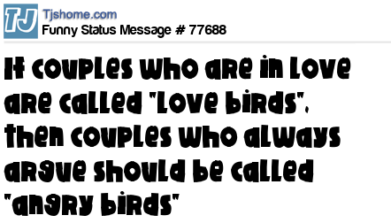 - # 81904 If couples who are in love are called "LOVED BIRDS", then couples who argue should be called "ANGRY BIRDS".
