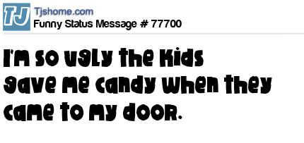 X I'm so ugly the kids gave me candy when they came to my door.