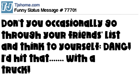 X don't you occasionally go through your friends' list and think to yourself: DANG! I'd hit that....... with a truck!