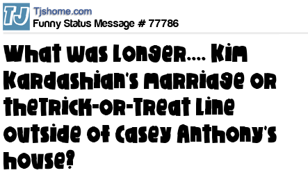 - # 77707 What was longer.... Kim Kardashian's marriage or theTrick-or-Treat line outside of Casey Anthony's house??