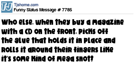 X says Who else, when they buy a magazine with a CD on the front, picks off the glue that holds it in place and rolls it around their fingers like it's some kind of mega snot?