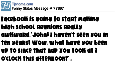 - # 77862 Facebook is going to start making high school reunions really awkward. “John! I haven't seen you in ten years! Wow, what have you been up to since that nap you took at 3 o'clock this afternoon?”