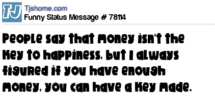 - # 161647 People say that money is not the key to happiness, but I always figured if you have enough money, you can have a key made.