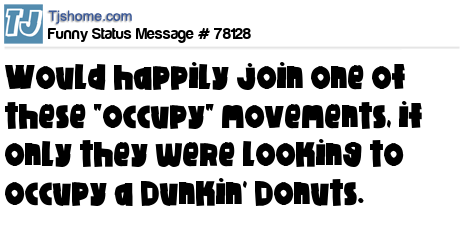 X would happily join one of these "occupy" movements, if only they were looking to occupy a Dunkin' Donuts.