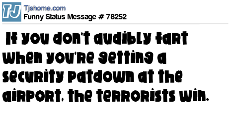 X says If you don't audibly fart when you're getting a security patdown at the airport, the terrorists win.