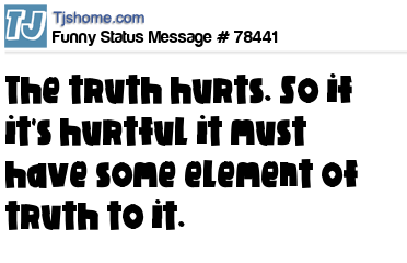 - # 69670 Truth hurts. Maybe not as much as jumping on a bicycle with a seat missing, but it hurts
