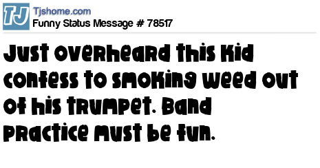X is Just overheard this kid confess to smoking weed out of his trumpet. Band practice must be fun.