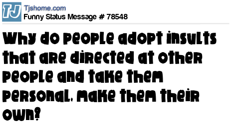 X says Why do people adopt insults that are directed at other people and take them personal, make them their own?