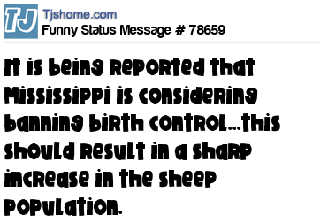 X is It is being reported that Mississippi is considering banning birth control...this should result in a sharp increase in the sheep population.