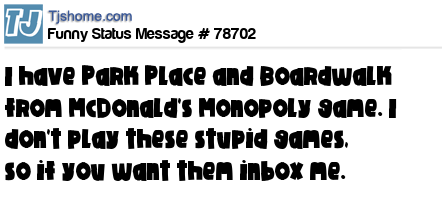 - # 135262 I've been playing the Monopoly game at McDonalds and so far all I've won is a double chin and 3 heart attacks