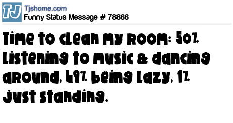 X is Time to clean my room: 50% listening to music & dancing around, 49% being lazy, 1% just standing.