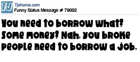X says You need to borrow what? Some money? Nah, you broke people need to borrow a job.