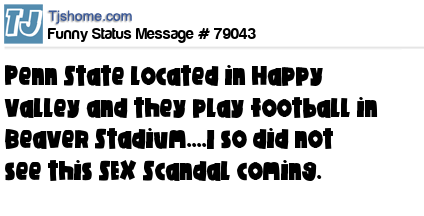 X is Penn State located in Happy Valley and they play football in Beaver Stadium....I so did not see this SEX Scandal coming.