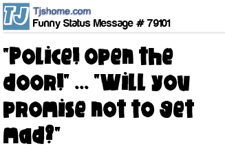 X says "Police! Open the door!" ... "Will you promise not to get mad?"