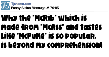 X Why the "McRib" which is made from "McAss" and tastes like "McPuke" is so popular, is beyond my comprehension!