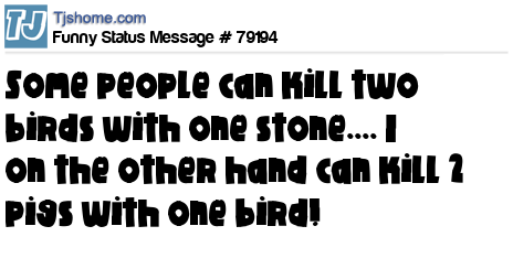X is Some people can kill two birds with one stone.... I on the other hand can kill 2 pigs with one bird!