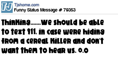 X was thinking.......We should be able to text 911, in case were hiding from a cereal killer and don't want them to hear us. 0.o