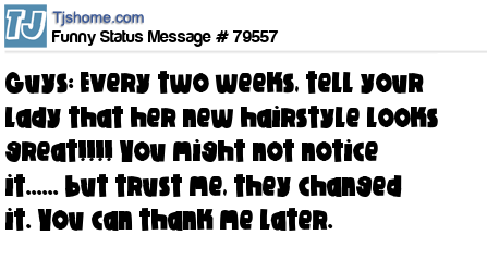 X Guys: Every two weeks, tell your lady that her new hairstyle looks great!!!! You might not notice it...... but trust me, they changed it. You can thank me later.