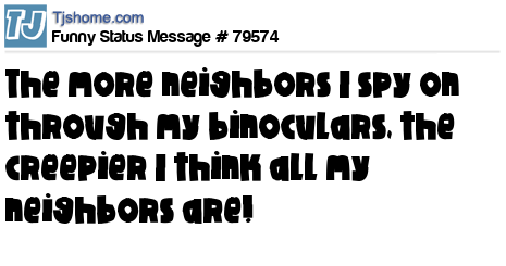 - # 109974 Started to compliment my neighbors on their new wallpaper but then I realized they can't hear me through binoculars.