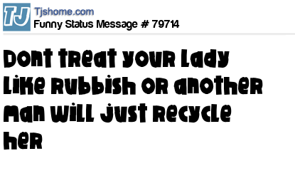 X says Dont treat your lady like rubbish or another man will just recycle her