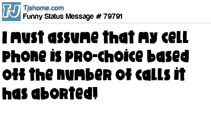 X I must assume that my cell phone is pro-choice based off the number of calls it has aborted!