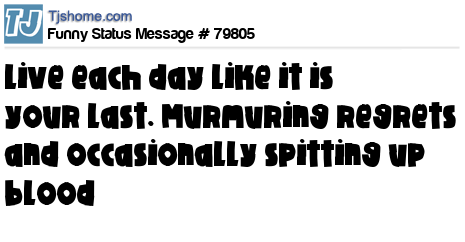 X is Live each day like it is your last. Murmuring regrets and occasionally spitting up blood