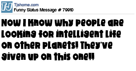 X Now I know why people are looking for intelligent life on other planets! They've given up on this one!!