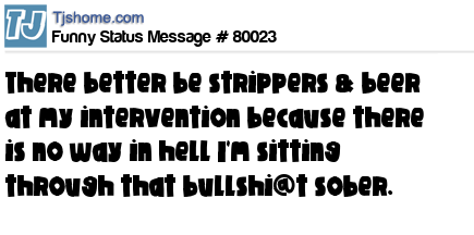 X There better be strippers & beer at my intervention because there is no way in hell I'm sitting through that bullshi@t sober.