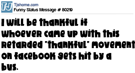 X I will be thankful if whoever came up with this retarded "thankful" movement on facebook gets hit by a bus.