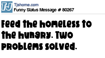 - # 20830 Solution to two of the world's problems: Feed the homeless to the hungry.